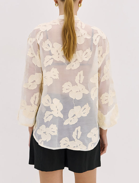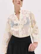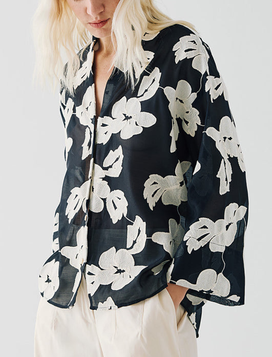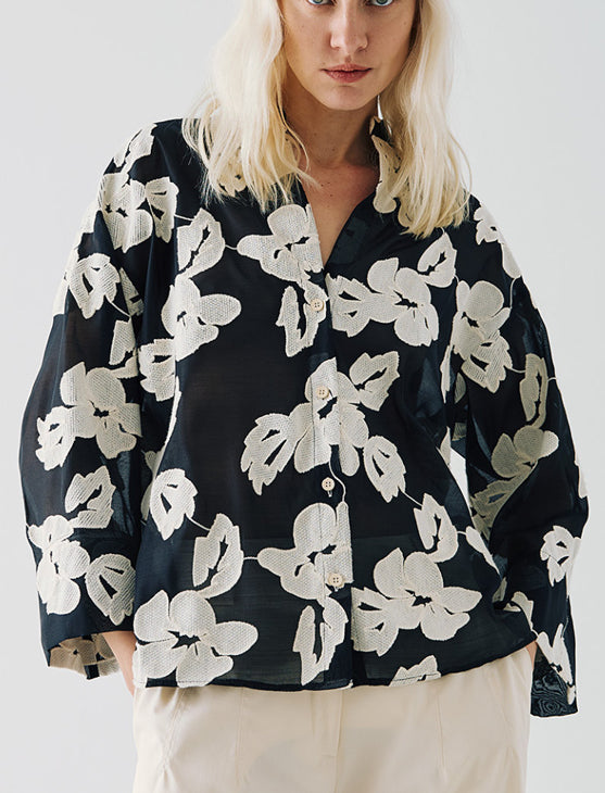 Camicia con motivi floreali e maniche ampie