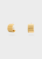 Orecchini dorati con finitura rigata e perla centrale incastonata