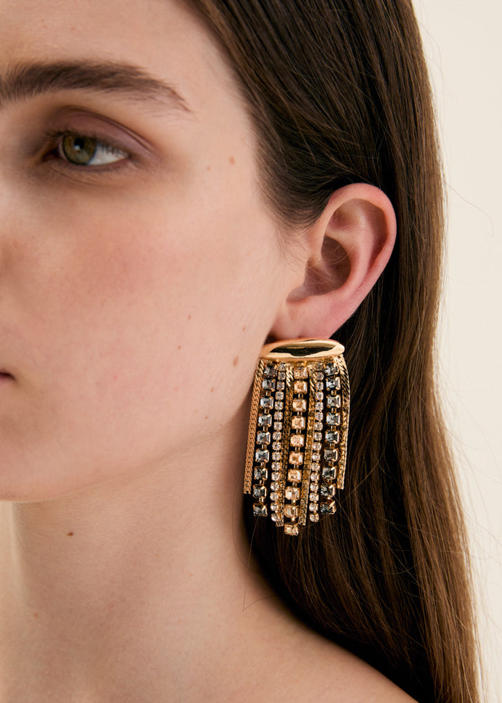 Orecchini Ava Con Frange oro, un modello dinamico e moderno che dona movimento e stile al look.