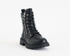 Stivaletti da bambina in stile militare di Xti Kids. Realizzati in materiale sintetico resistente e facile da pulire. Sono dotati di lacci anteriori e di una cerniera laterale accanto ai lacci per una calzata rapida e confortevole. La suola in gomma offre buona aderenza e stabilità. Ideali per un look urbano con stile e funzionalità. Questo modello è stato certificato vegano dall'organizzazione mondiale per i diritti degli animali PETA (Peta).