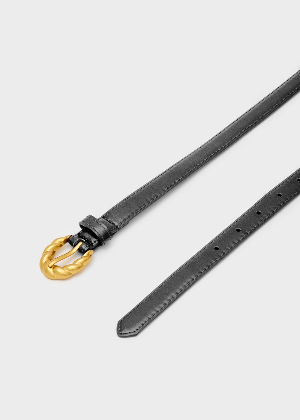 Cintura sottile con fibbia in metallo lavorato, un dettaglio sofisticato che dona eleganza a qualsiasi look. Un accessorio essenziale che valorizza la silhouette e aggiunge un tocco di classe ad abiti, gonne o pantaloni