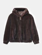 Giacca con cappuccio e cerniera in pelliccia ecologica