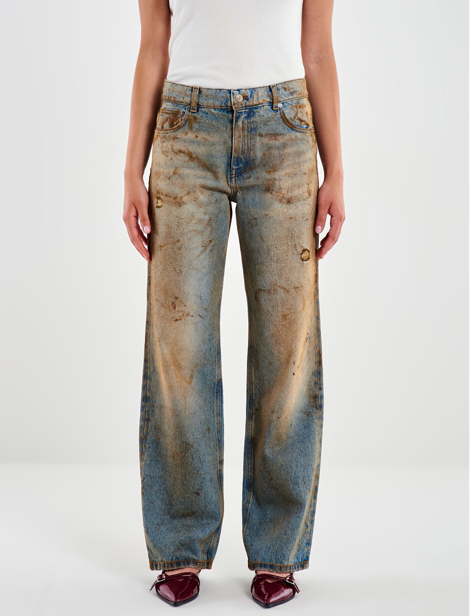 Jeans a vita regolare in denim chiaro effetto invecchiato