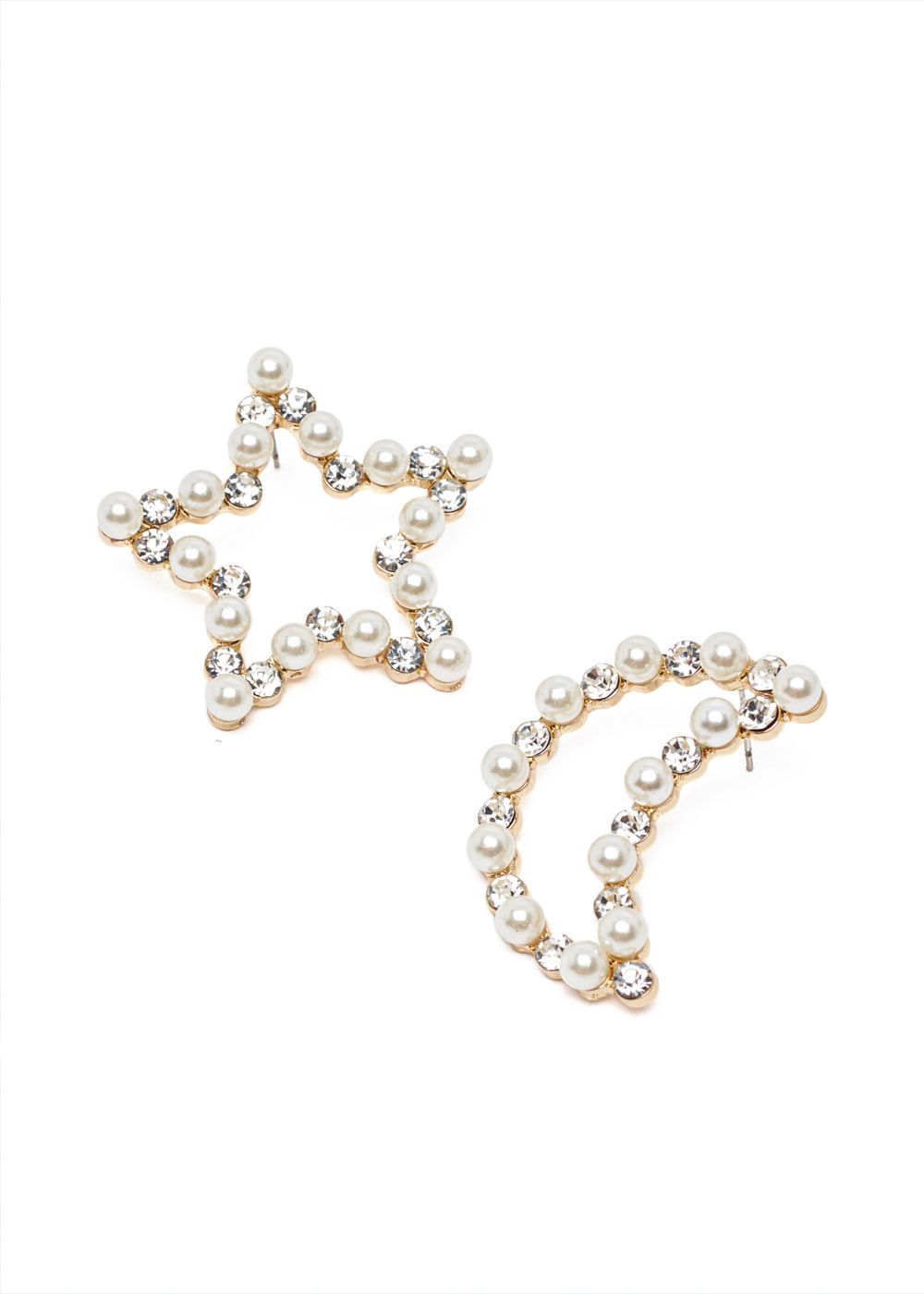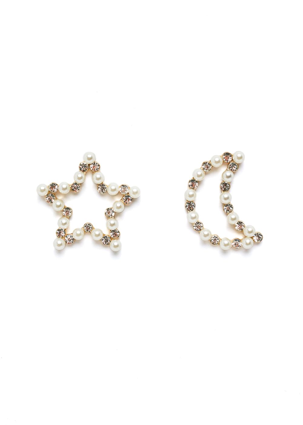 Orecchini Luna E Stella Oro Con Perle E Cristalli