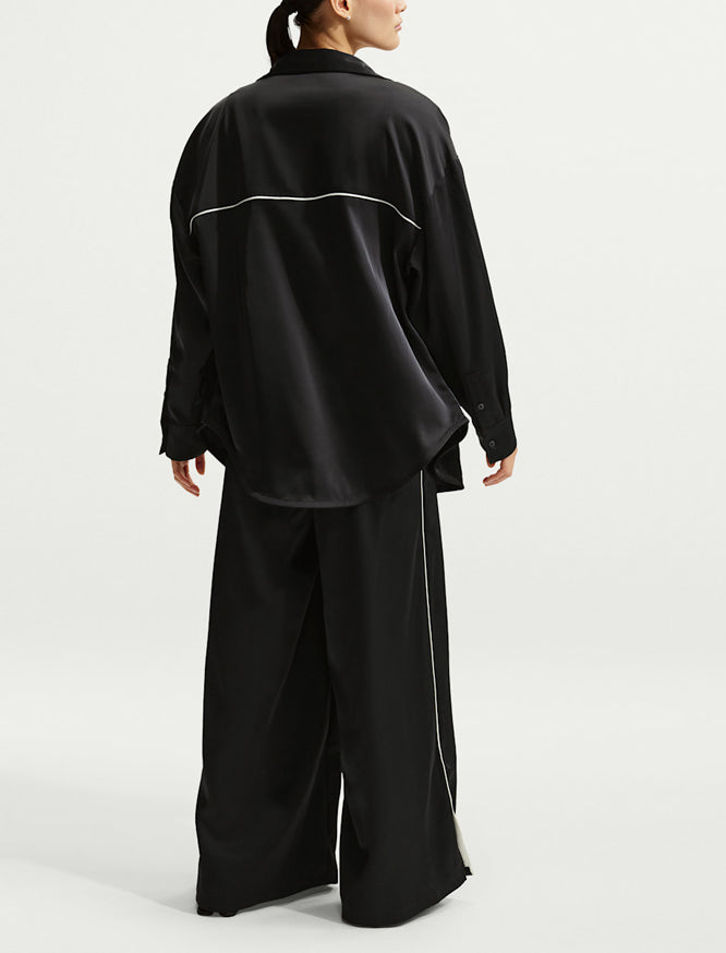 Progettato per una vestibilità ampia e lunga, questo top con bottoni è realizzato in tessuto satinato per una sensazione di lusso. Il dettaglio del piping aggiunge un tocco di stile sportivo a questo look raffinato.