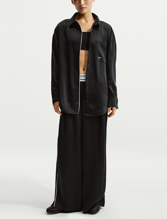 Top oversize in raso a maniche lunghe Nike IM0575-010 Nero Donna