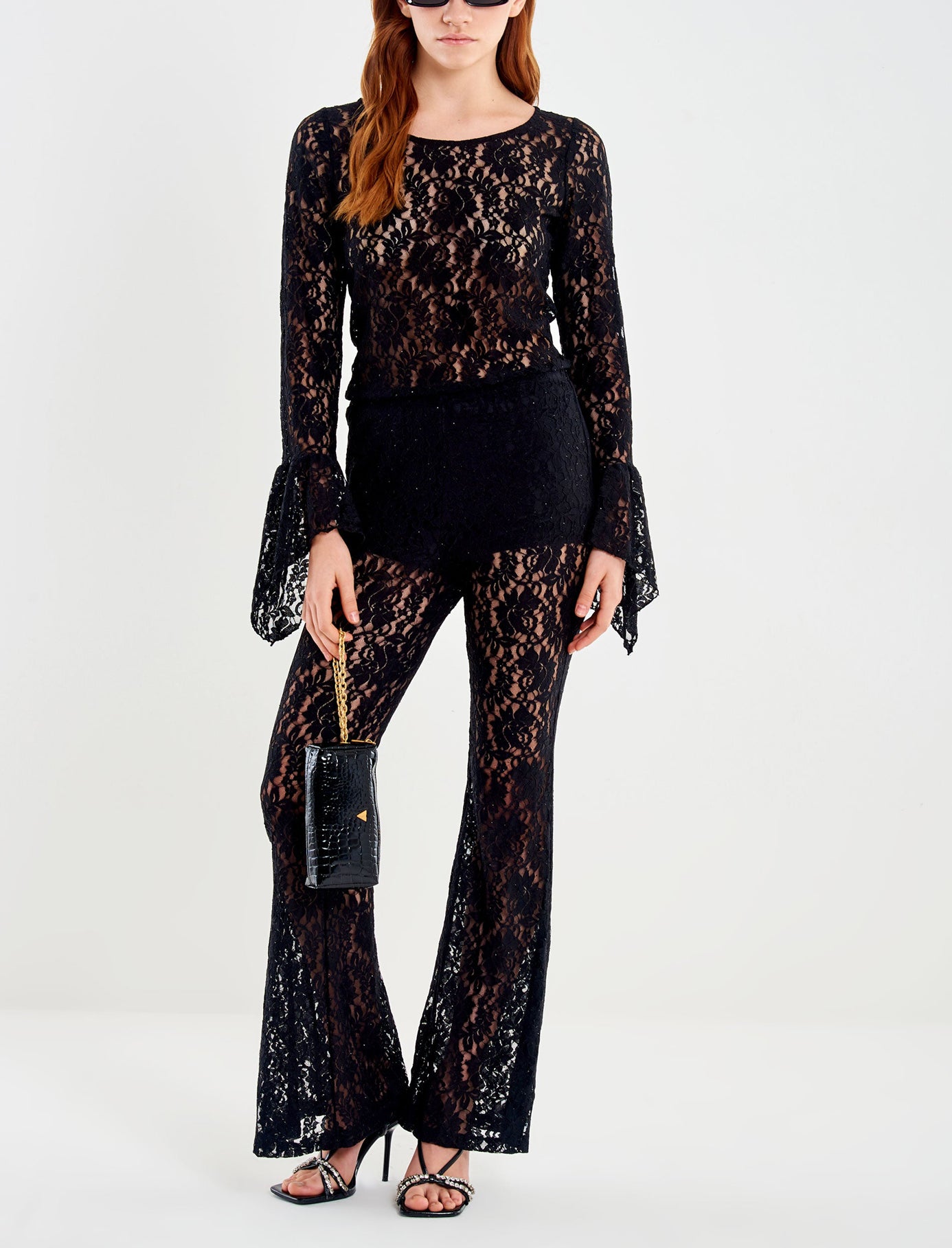 Il pantalone in pizzo a zampa VICOLO TF1647 è un capo elegante e femminile che unisce comfort e stile raffinato. Perfetto per chi cerca un look sofisticato e distintivo.