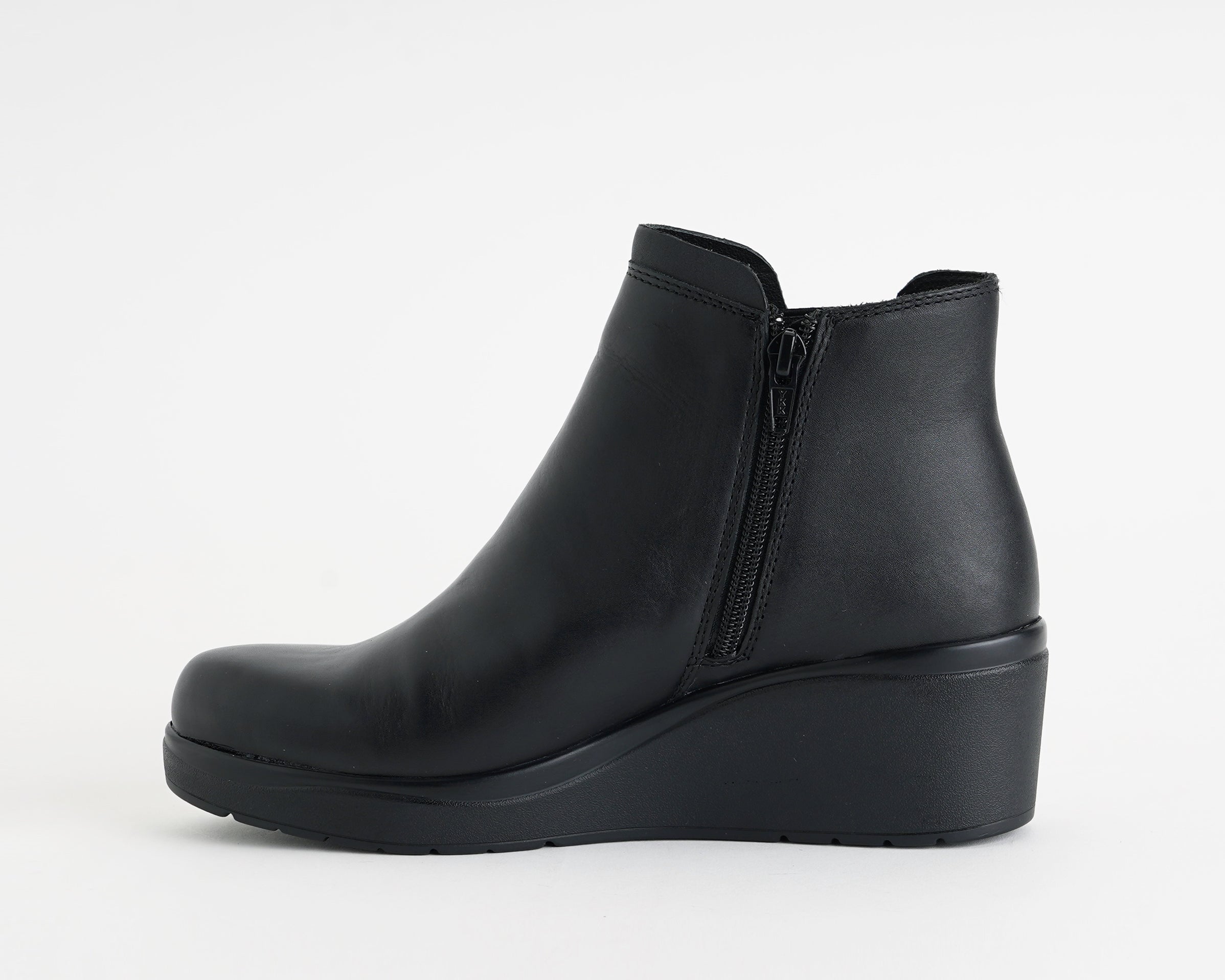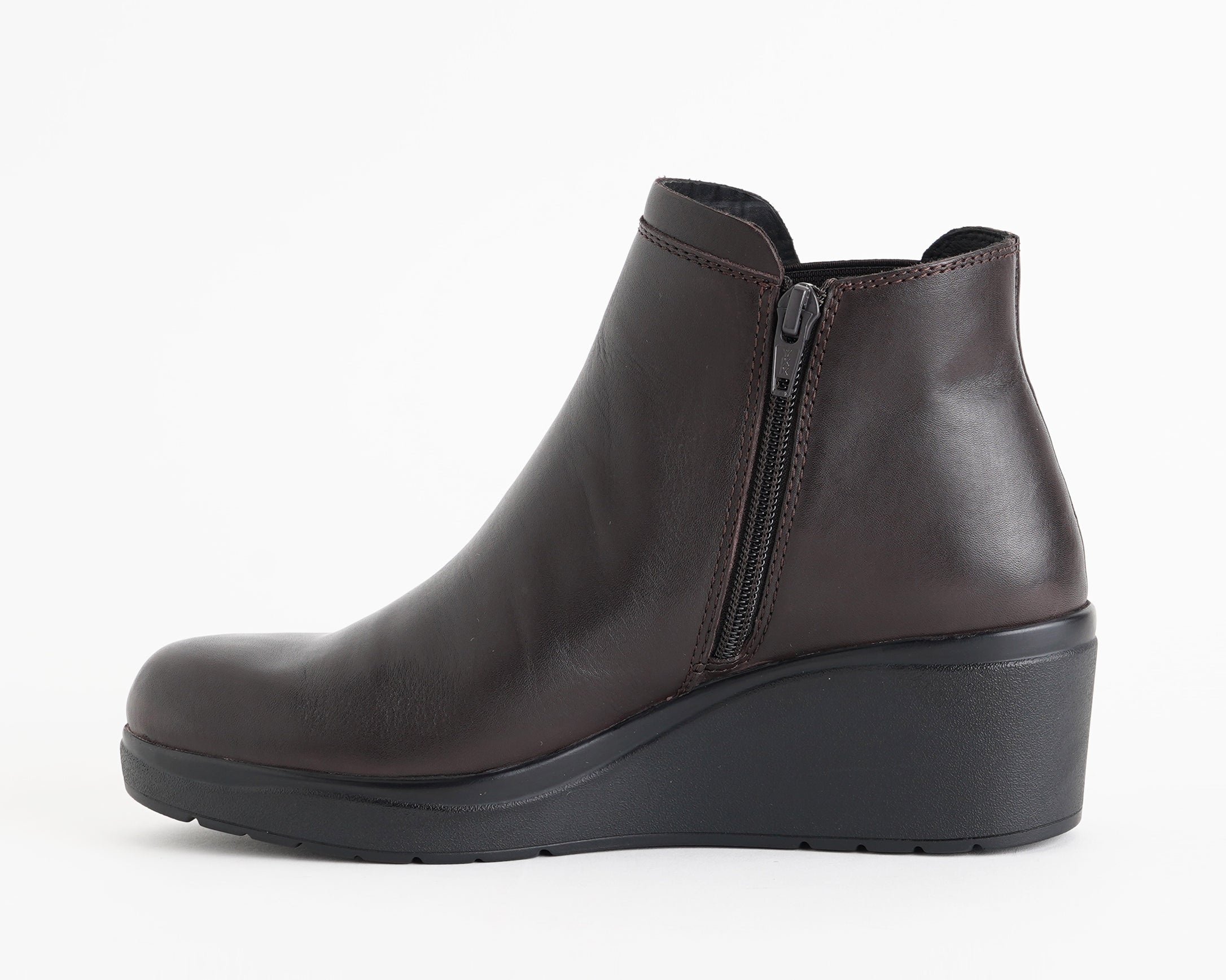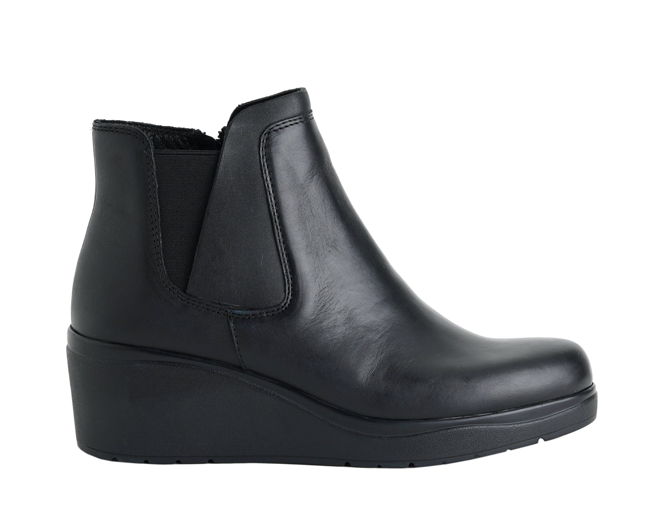 Tronchetto in pelle con tacco 5 cm e plateau 2 cm. Comodo, con plantare estraibile e cerniera laterale per praticità e stile elegante.