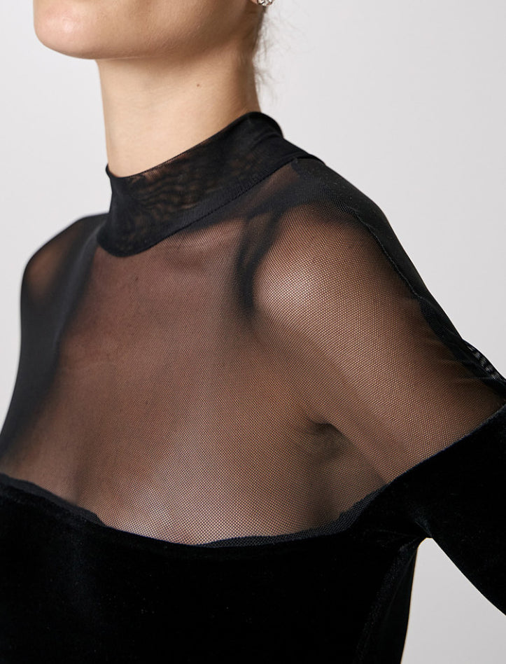 Body in velluto con dettagli in rete
