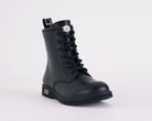 Anfibio da bambina firmato CULT, perfetto per la stagione autunno/inverno. Realizzato in pelle di alta qualità con finitura nera, questo stivale combina stile e funzionalità.