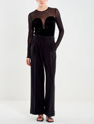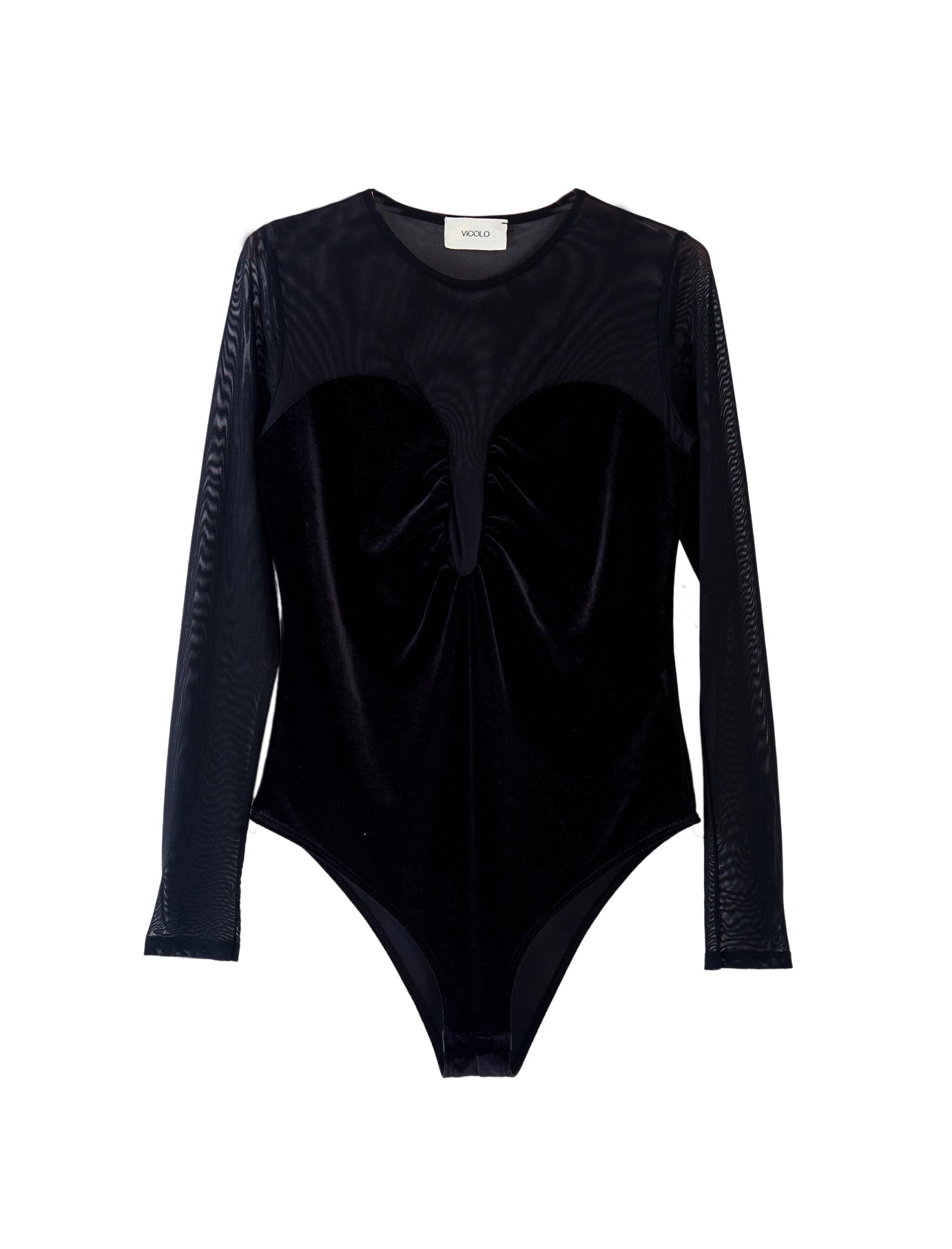 Il body in tulle e ciniglia VICOLO TF0391 è un capo sofisticato che combina trasparenze eleganti e dettagli preziosi. Perfetto per chi cerca un look romantico e sensuale.