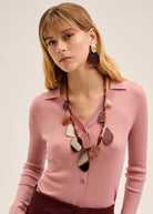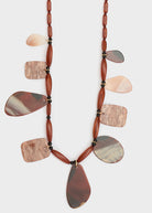 Collana lunga mix elementi etno-chic dal design asimmetrico, arricchita da elementi irregolari che richiamano forme naturali. Un accessorio dal forte carattere decorativo, ideale per valorizzare abiti dai toni neutri o per aggiungere un tocco di stile personale a look più el
