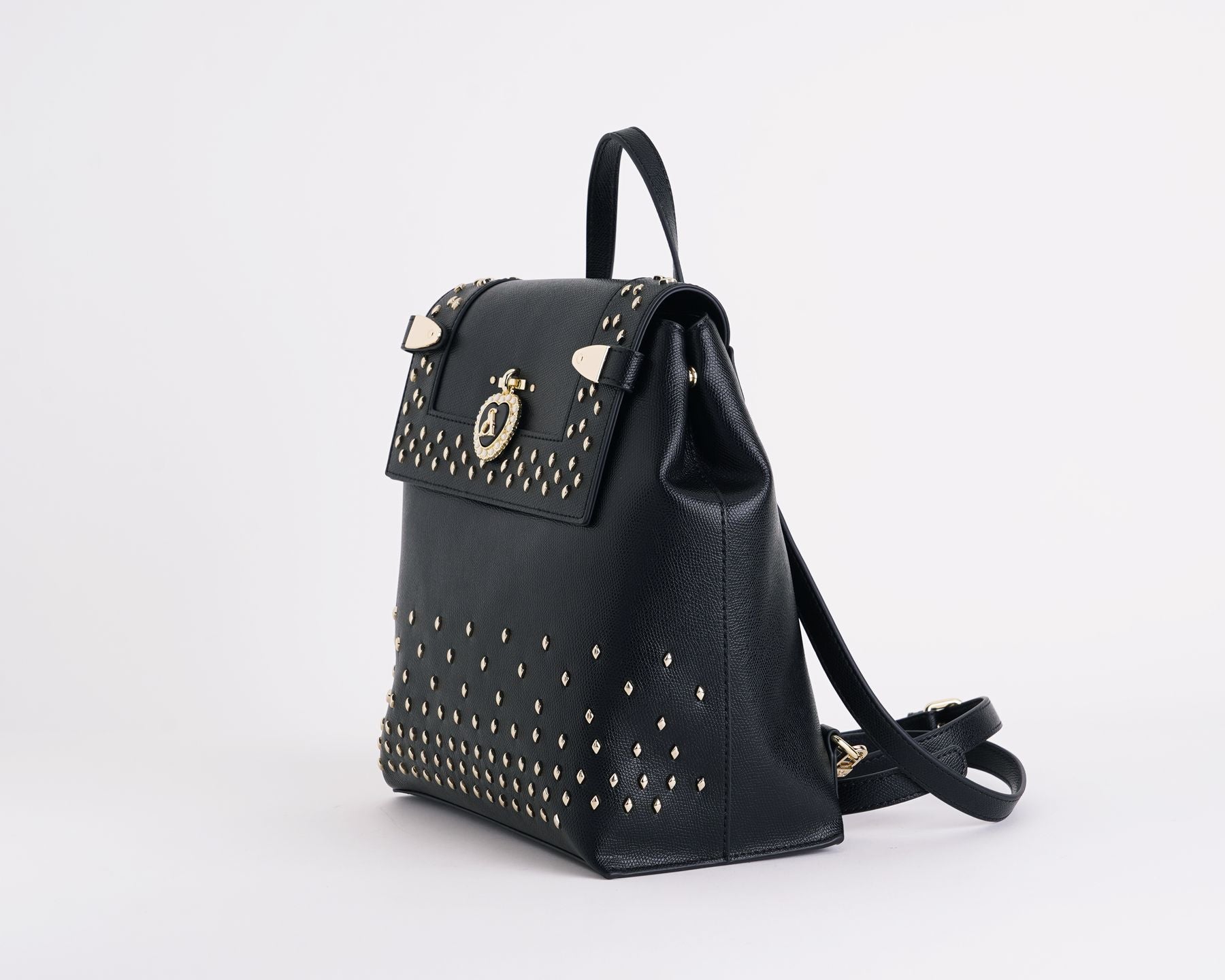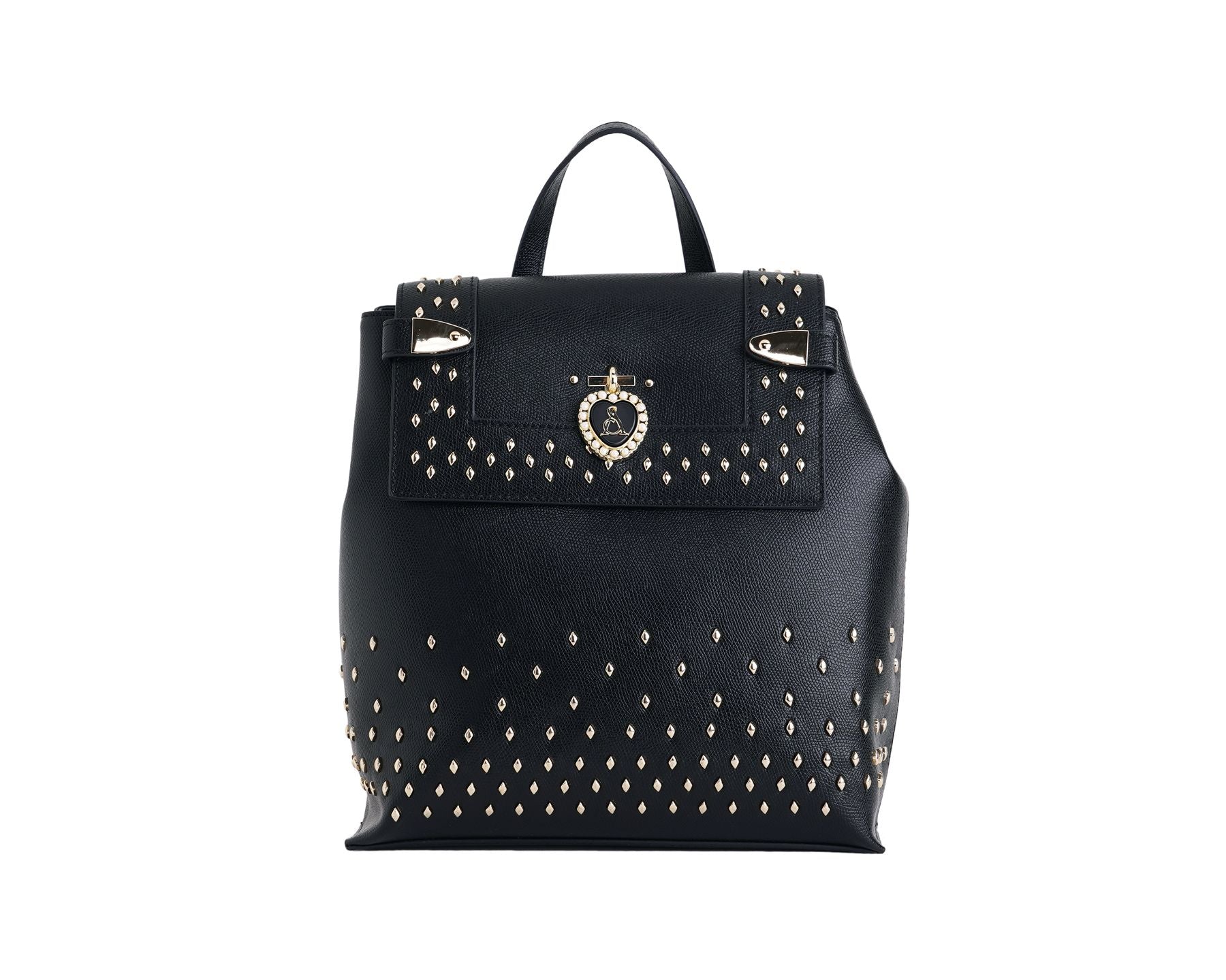 Zaino in ecopelle nero con borchie oro